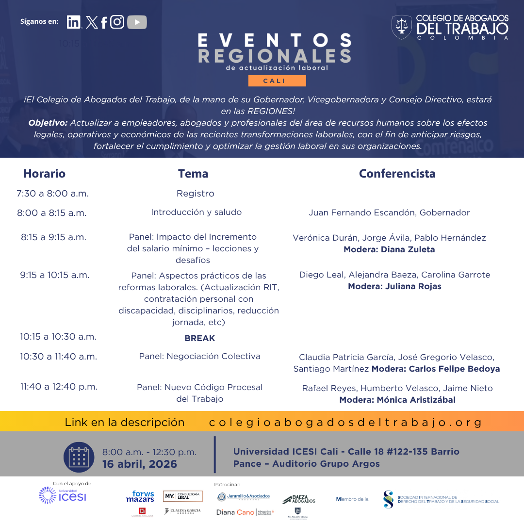 DíasHorasMinutosSegundos Su nombre Su correo electrónico Su ciudad ¿Su número de cédula? Su número telefónico? ¿Usted es? ColegiadoMiembro del CALAVEstudiante de pregradoPúblico general Acepto la política de protección de datos